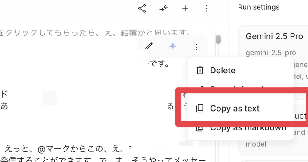 手順1:まずはAI Studioに移動したら、新しいトーク画面に移動し、以下のプロンプトを画面下の入力ボックスに打ち込みます。