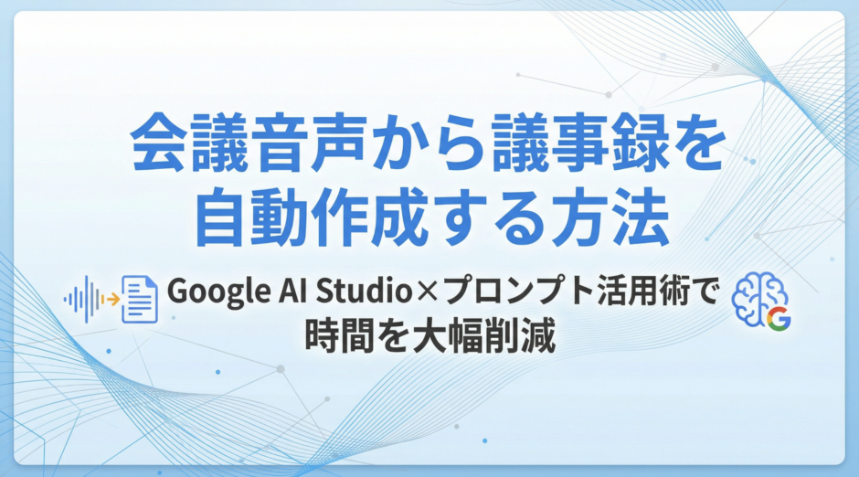 実は今、会議の音声データ+AI+プロンプトを組み合わせるだけで、「そのまま社内共有できるレベルの議事録」をほぼ自動で作成できるようになりました。