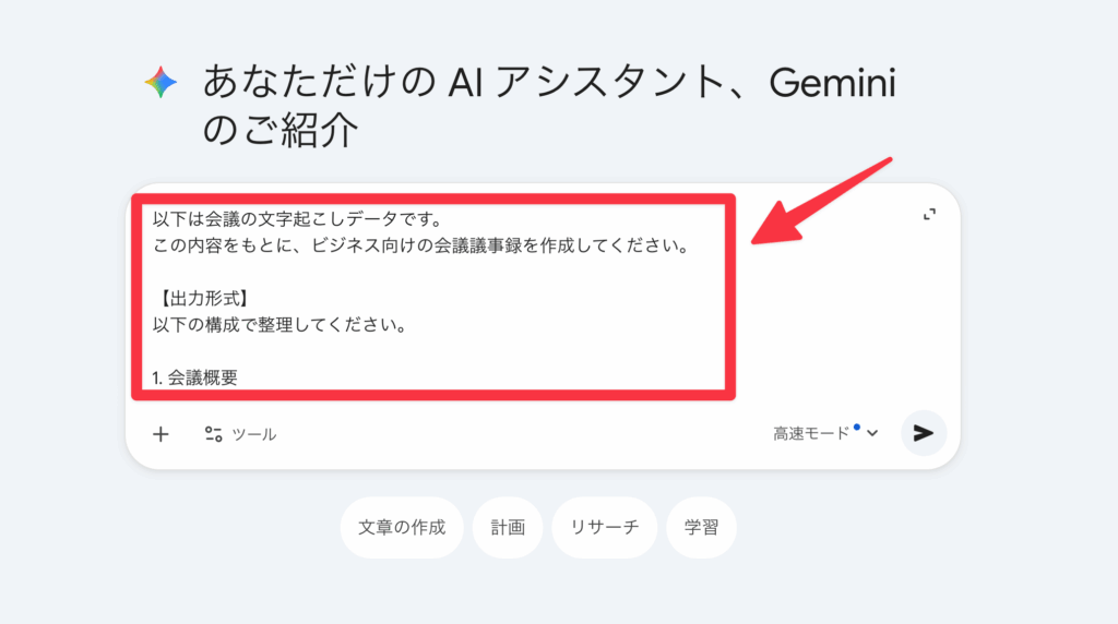 STEP3:議事録用プロンプトを貼り付ける【最重要パート】