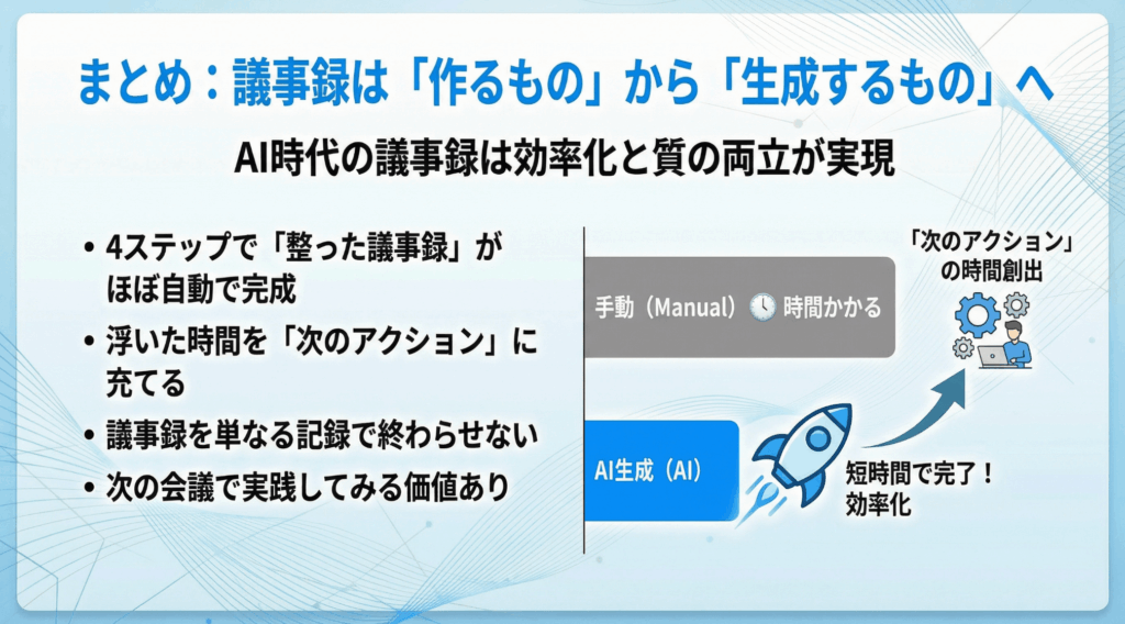 まとめ|議事録は「作るもの」から「生成するもの」へ