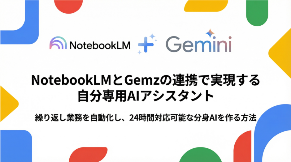 実は今、NotebookLMとGoogle Gemini Gemsを組み合わせることで、「あなた専用のAIアシスタント」を簡単に作れるようになりました。