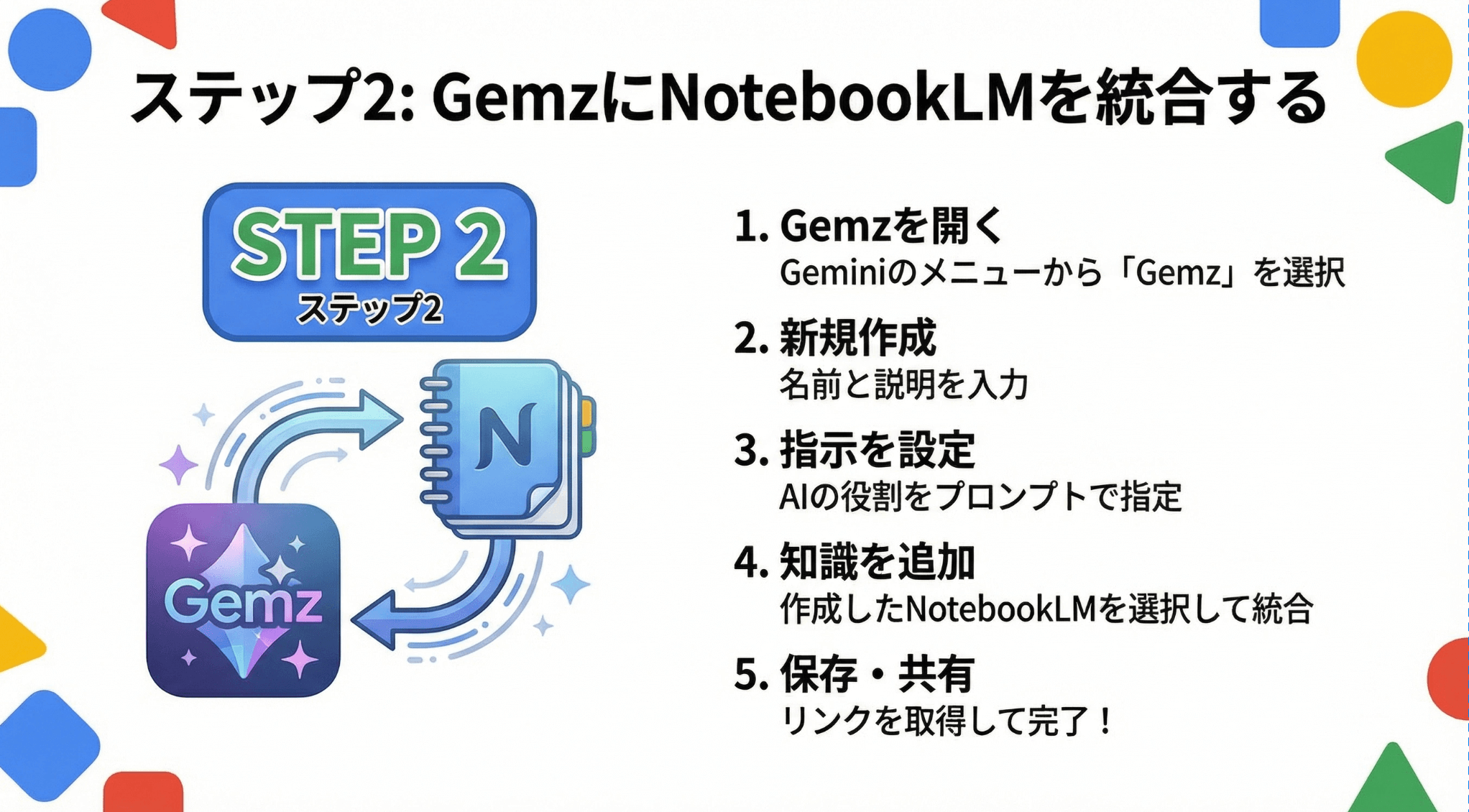 - STEP3:GemsにNotebookLMを連携させる