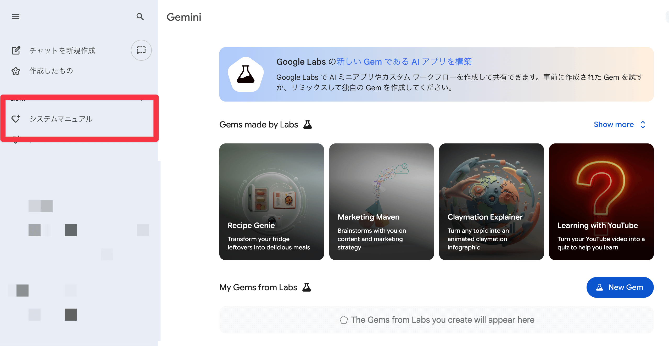 - Google Gemini Gemsを新規作成する