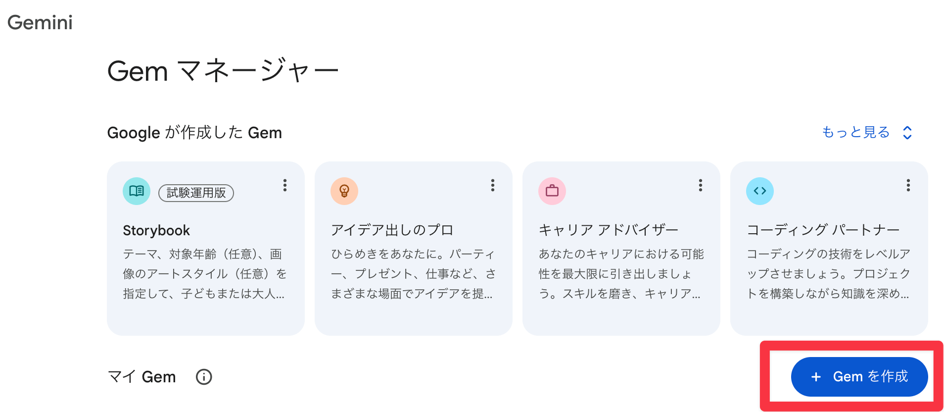 次に、Google GeminiでGemsを作成します。